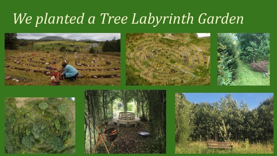 When Claire and I lived at Carrowcrory Cottage and Labyrinth Gardens, we created a Tree Labyrinth that was a quarter of an acre of trees.