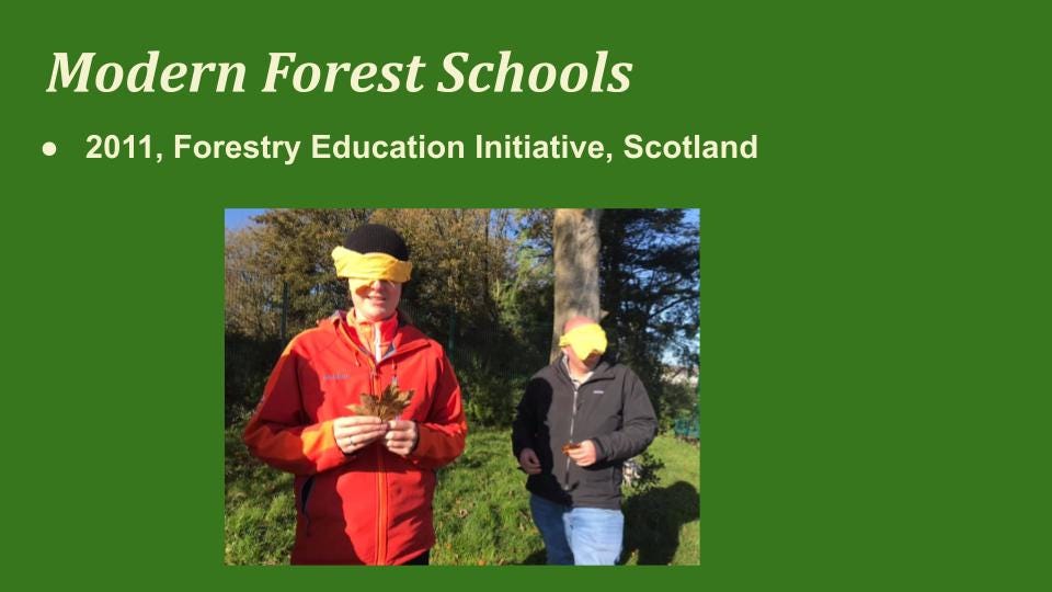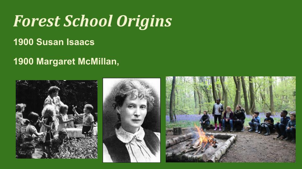 About the time of Baden Powell, there were the incredible Susan Isaacs and Margaret McMillan who took groups of London children into the forests for education.
